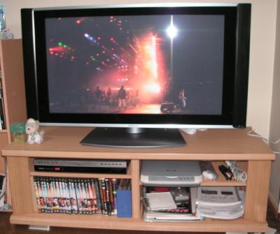 人によって考えはまちまちだと思いますが,私は「買うからにはいいものを」という考えの持ち主でして,アナログ波停止までのつなぎのテレビを買おうなどという考えは毛頭ありませんでした.せっかくなら大きい画面がいいし,普段DVDをよく見るし,ということで私が選んだのは37型のプラズマテレビです.液晶テレビもありますが,電器店の薄暗い場所で見たプラズマの画面の綺麗さに一目惚れして,考えが動かなくなりました.